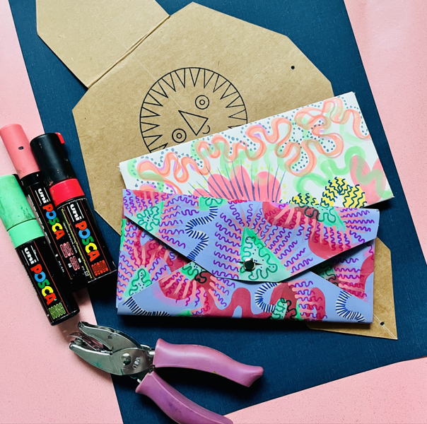 Join Alice and Karen from Let’s Make Art in an exploration of Zandra Rhodes' colour and pattern world. Design and decorate a piece of durable vinyl, creating drawn patterns inspired by Zandra’s love of the natural world—such as shells, feathers, and cacti—as well as her iconic prints, including wiggles and buttons. Then assemble your own unique pencil case, finished with a stylish metal stud.